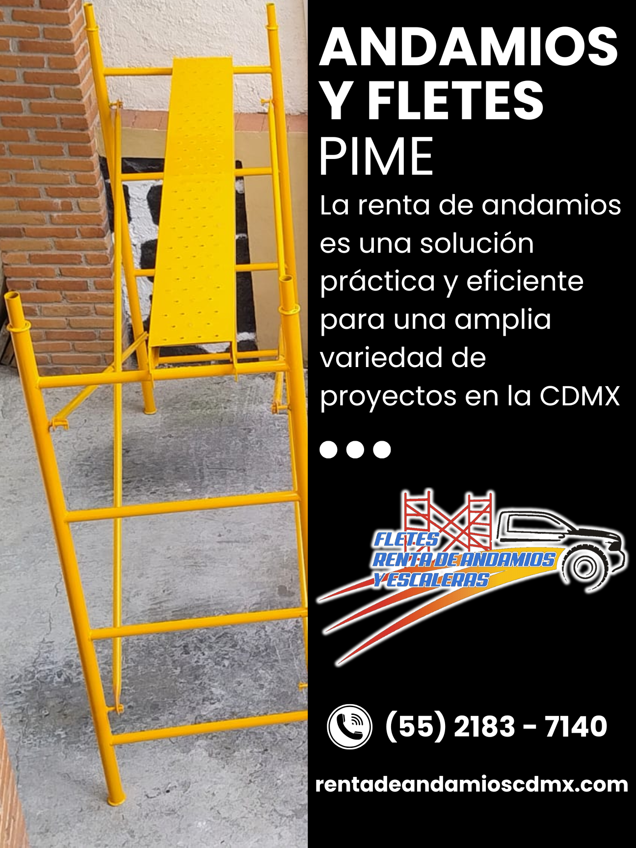En Fletes, Andamios y Escaleras en CDMX, brindamos soluciones integrales de fletes y renta de andamios en la CDMX, asegurando un servicio confiable, seguro y siempre a tiempo. Nuestro compromiso es apoyar a constructoras, empresas y particulares con transporte eficiente y equipo de calidad, siendo el aliado estratégico que impulsa tus proyectos sin contratiempos.