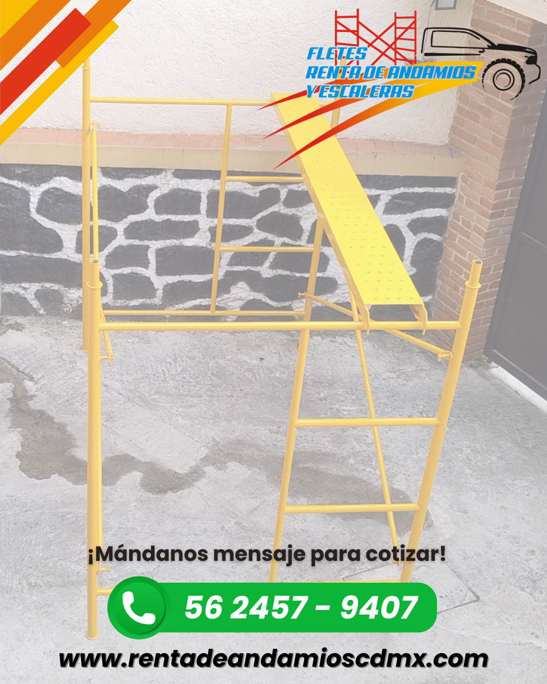 Ofrecemos renta de andamios resistentes y seguros, ideales para proyectos de construcción, remodelación o mantenimiento en la CDMX. Nuestro equipo cumple con los más altos estándares de seguridad para que trabajes con confianza en cada proyecto.”